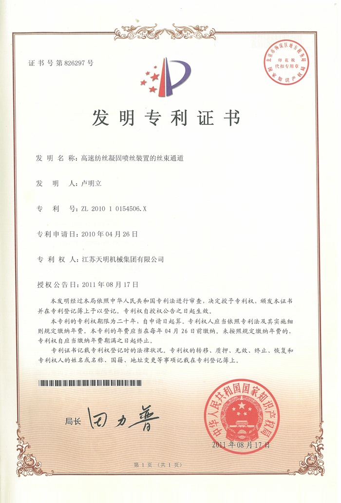 ● 2008年芳纶1414纤维纺丝关键设备承担江苏省重大科技成果产业化项目
